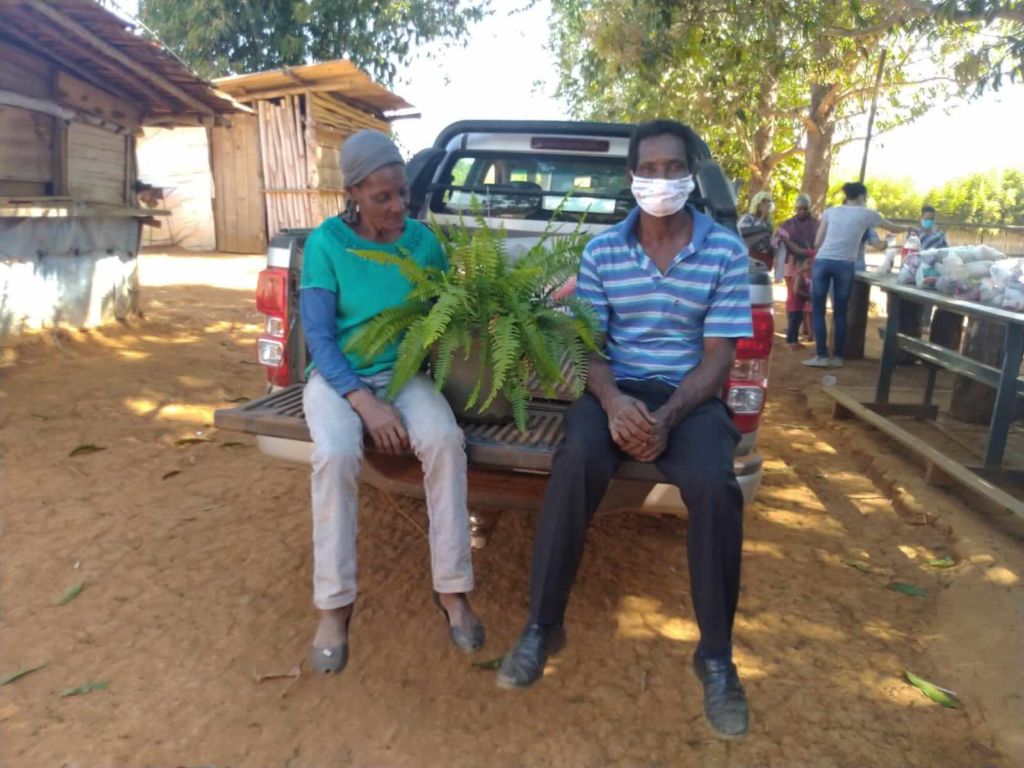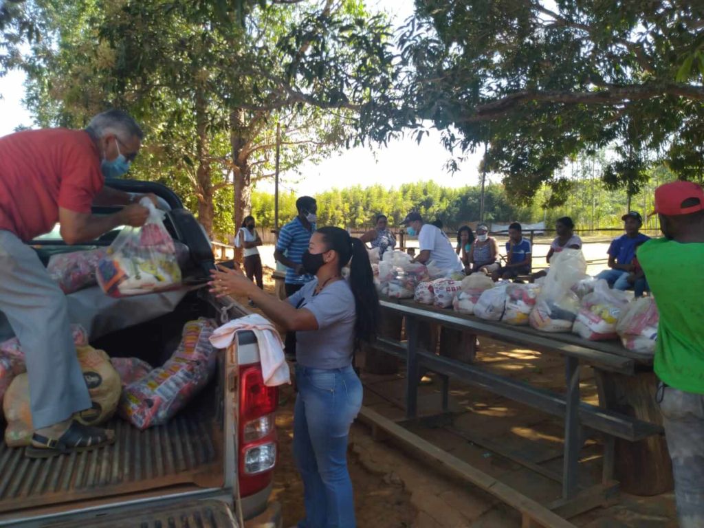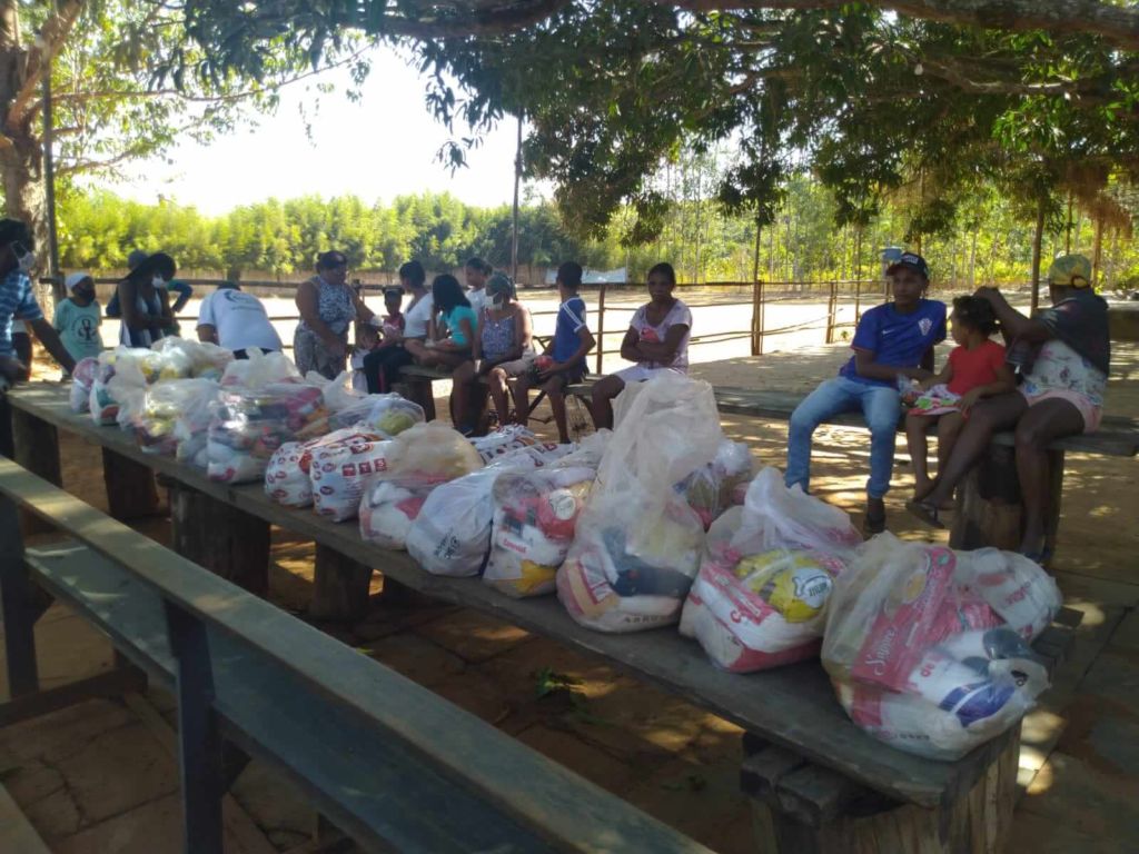 Entrega de cestas básicas na comunidade quilombola de Saco Barreiro, em Pompéu MG.